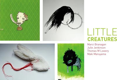 Each of the artists in Little Creatures brings a unique personal history to their work. All have lived abroad for some portion of their life and in their formative years developed their own distinct way of relating to their cultural surroundings. The artists incorporate diverse past experiences and process fragmented memories to create their own realities expressed through the animals and characters in their work. Often presenting their "little creatures" as fragments themselves, the artists' work creates commentary about feelings of disconnectedness, trying to relate to others, and perceived reality - all relating back to somewhat familiar archetypes of collective unconsciousness; the little creatures that we see with our eyes, in our conscious imaginations, and in our dreams.