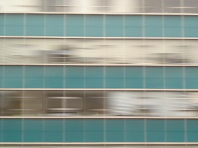 Pete Baldes slices video into thin horizontal strips of animated GIFS that are stacked back into the original video's frame, but the GIFs are out of synch, coalescing into a image and then falling apart again.